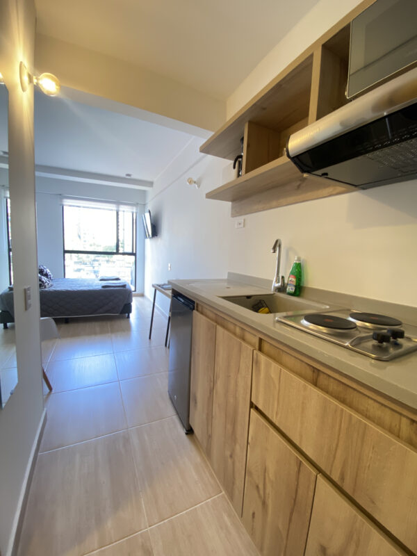 Se arrienda apartaestudio amoblado en el centro de la ciudad, con un área de 20 m² distribuidos de manera funcional. Cuenta con cocina integral con estufa eléctrica de 2 puestos, lavadero, closet y mobiliario completo. El edificio ofrece ascensor, gimnasio, salón social, coworking y vigilancia 24/7. Ubicación estratégica a pocos pasos de universidades como Los Andes y Jorge Tadeo, cerca de transporte público, zonas comerciales y culturales. Ideal para estudiantes y profesionales que buscan comodidad y seguridad.